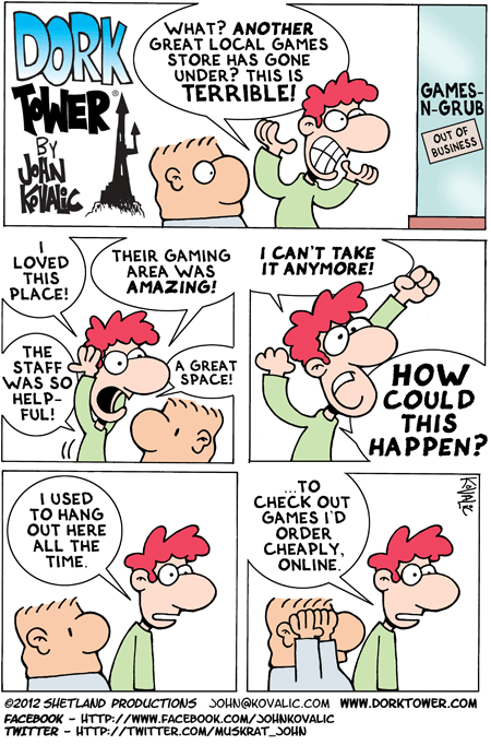 También me hace mucha gracia la gente que protesta cuando cierra una tienda porque ya no pueden ir a preguntarle al dueño por este o aquel juego, o a jugar un día con los colegas, y resulta que sólo compran por internet.