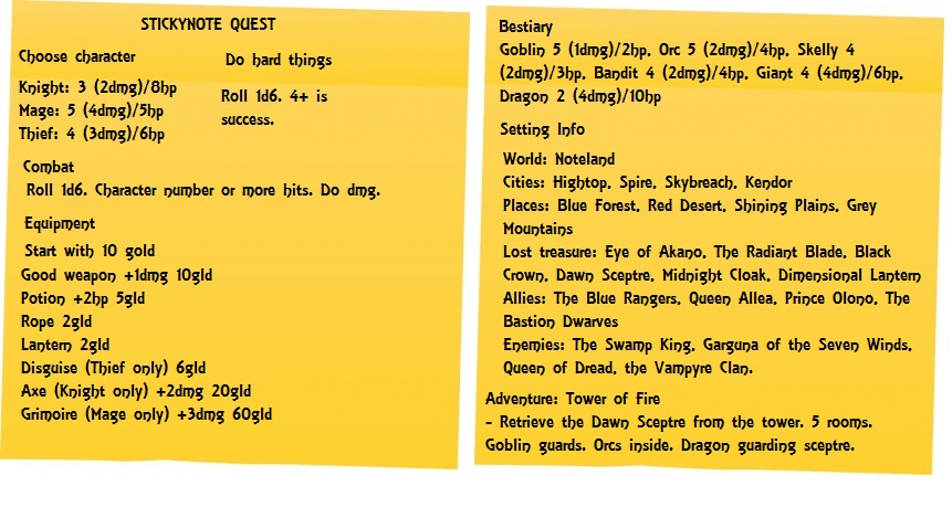 ¡Hop! Aquí tienes un sistema, bestiario, ambientación y aventura en un post it (requiere cierto nivel de inglés y de improvisación).
