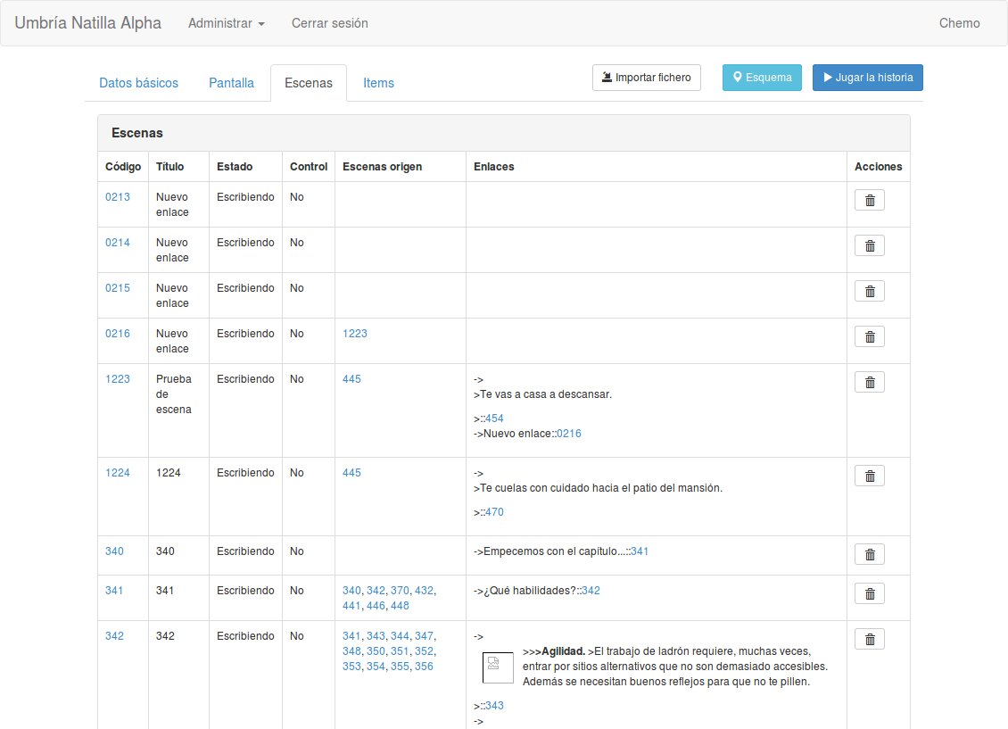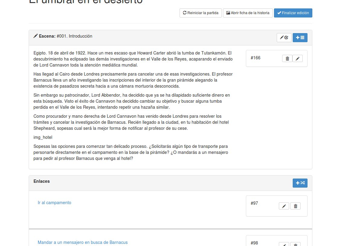 Una cosa que tendrá para los diseñadores es el 'mapa de escenas'. Junto con la posibilidad de subir contenidos mediante scripts el proceso de puesta en marcha de proyectos es muy rápido ya que nos permite subir el 'esqueleto' de la aventura y luego con calma trabajar con variables y condicionales desde la aplicación (aunque confieso que yo le estoy pillando el truco a escribir directamente todo el código en texto plano).
