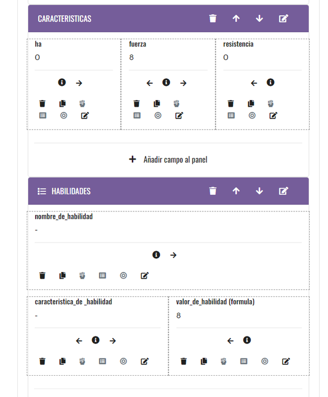 Lo que intentaba hacer era añadir las habilidades como una lista para no tener que definir todas y cada una de ellas, y así cada jugador podría añadir a su hoja solo las que necesitase o las que tuviese alguna posibilidad de usar, pero si no se pueden aplicar las fórmulas de esta manera dentro de una lista para automatizar la puntuación de las habilidades no tiene sentido darle más vueltas.