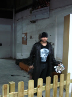 Momentos antes de cenar, mientras unos cuantos compañeros de KDD terminaban una partida de munchkin, Diluvi y yo nos dedicamos hacer el macarra por el local. Y he aquí el resultado. El Cura Castigador, cuando va de buenas.