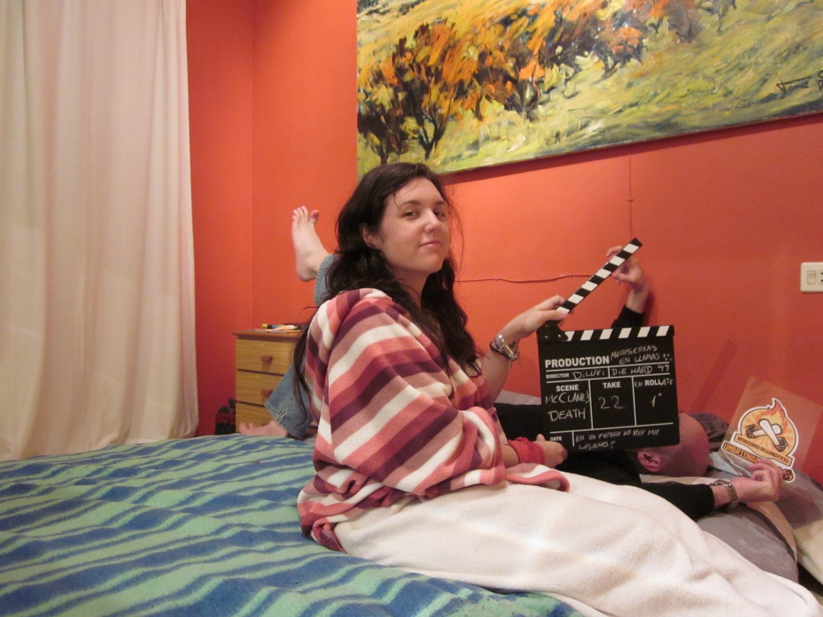 Sinceramente, yo, imaginación: cero. Nada de nada. Res de res, como diría mi Cuervito. Así que, en cuanto vimos esta prueba y decía lo de algo gracioso escrito en ella… Miré a Diluvi y pensé que debía escribirla él, porque yo no tenía ni idea de qué poner O.O Pero, ¿qué se pone en una claqueta para que sea super hiper mega hilarante hasta mearte encima? O.O Yo qué sé. Negué con la cabeza y nada más :P