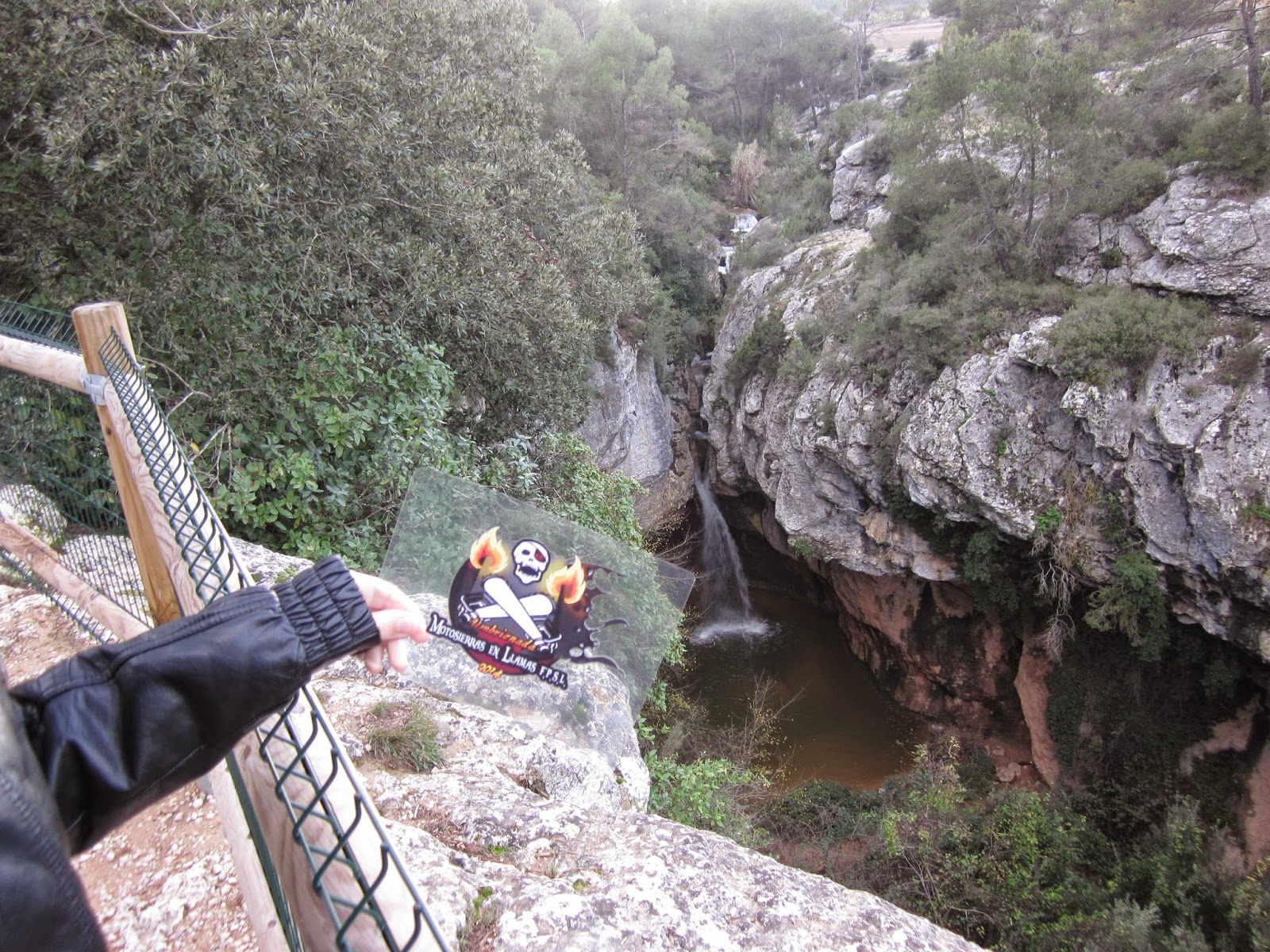 Se nos iluminaron las caras, y fui corriendo con el logo lo más cerca posible de la cascada.