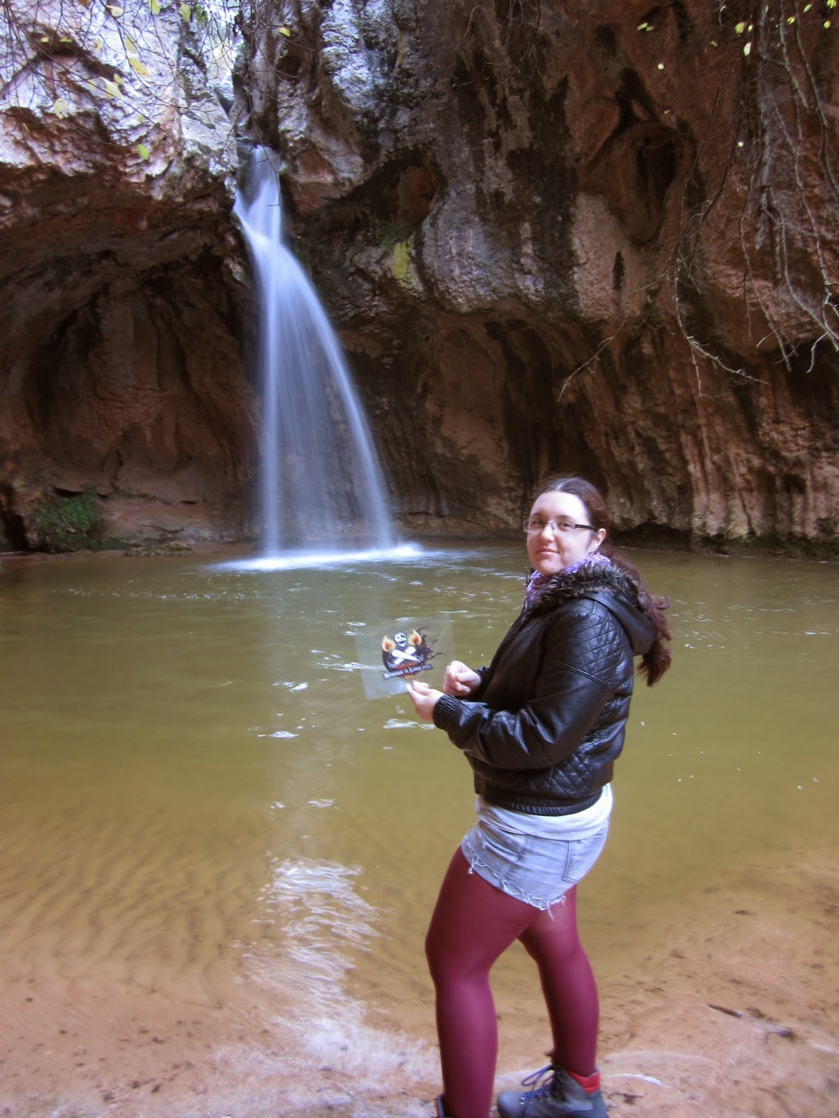 La cascada se ponía de vez en cuando, y se cortaba durante un rato, no sé por qué. Cuando estábamos preparándonos para hacer la foto, fue justo cuando se cortó U.U Y pensábamos que no volvería a ver más. Medio deprimidos por nuestra mala suerte, guardamos el logo, y la cámara, justo en el momento en que volvía a ponerse la cascada en funcionamiento.