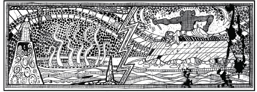 Mientras pasan por vuestras mentes distintos planes desesperados para rescatar a vuestros vecinos, la superficie del mar subterraneo se agita. Lo último que véis son unos tentáculos gigantescos alzarse en torno al drakkar y constreñirlo hasta romperlo como un barco de juguete.
