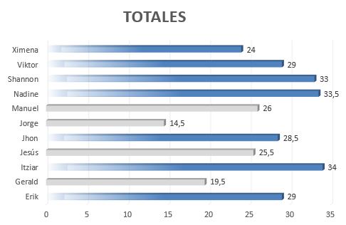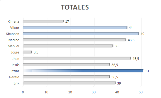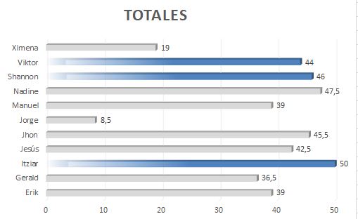 El tablón se va actualizando con los resultados y valoración del esfuerzo del equipo.