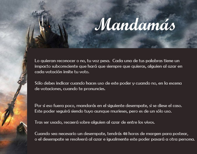 Además, los muertos por primera vez están divididos, por lo que se reclama la voz de aquel con el poder de desempatar para resolverlo. Actualmente: Vlad. Tras su uso, el poder rebota hacia Naivé