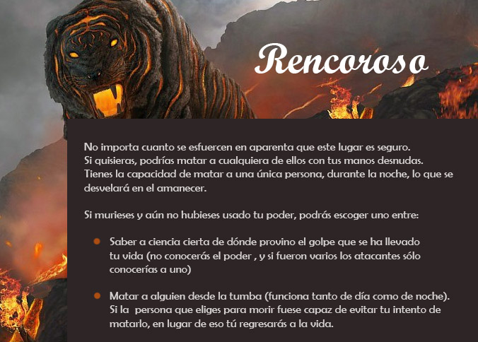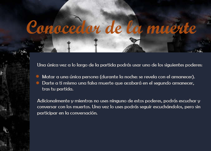 Además del don de matar durante la noche, podrás usar una única vez uno de los siguientes poderes: