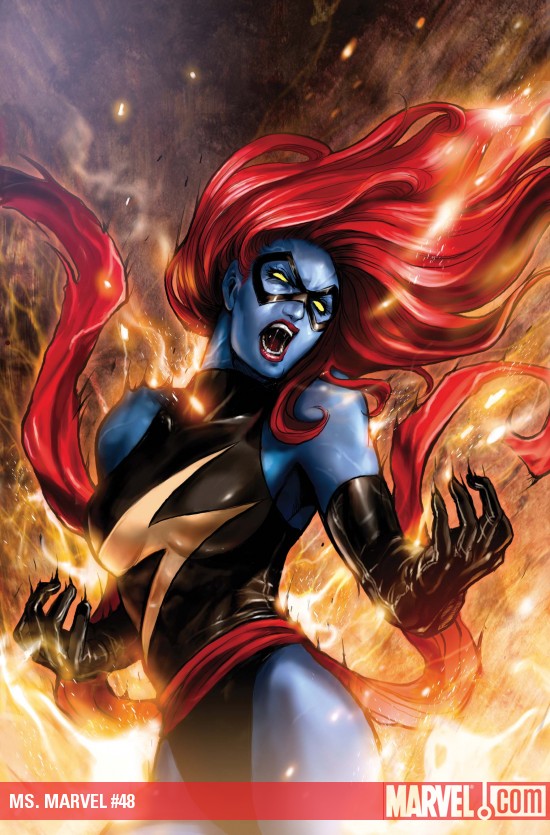 Mientras habláis, repentinamente se oscurece toda la sala, hasta el punto de no verse nada a medio metro de de cada uno, nadie comprende lo que sucede y para más sorpresas una luz reveladora aparece frente a ustedes, la luz provienen de las llamas de fuego que rodean a Mística, se está quemando viva, empieza a cambiar de formas a una velocidad increíble mientras el fuego la consume entre gritos de agonía: