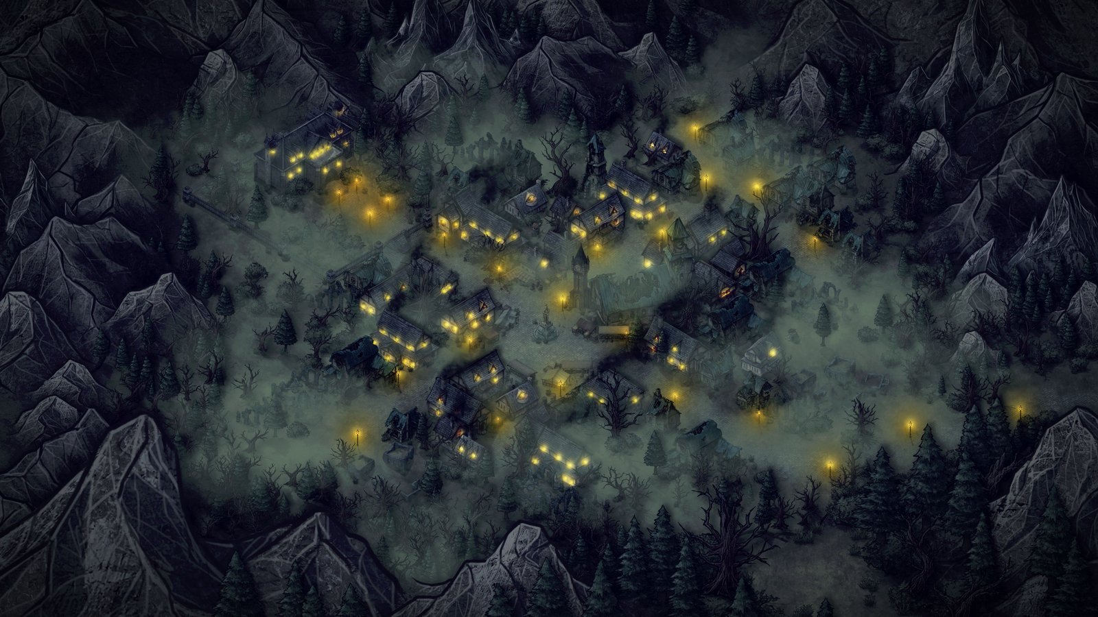 Mientras tanto, la niebla avanzaba a través de las calles de Kravenhold. Esta noche parecía que un frío preternatural la impregnaba aún más si cabía; las puertes se atrancaban y las contraventanas se barraban. La gente sabia se guarecía en sus casas y avivaban los fuegos de los hogares en un intento de mantener la helada oscuridad a raya. Al menos la mayoría de ellos. Siempre había rezagados, los más ambiciosos, recogiendo un hato más de leña, los más inconscientes, guardando un puesto de venta a última hora, o puede que los más jóvenes, jugando en las calles ajenos al peligro que parecía traer esta ominosa noche. Mientras tanto los cuervos lo observaban todo; no graznaban, no era su momento, miraban a su alrededor expectantes por si esta fuera la noche en la que llenarían sus buches de roja carne.