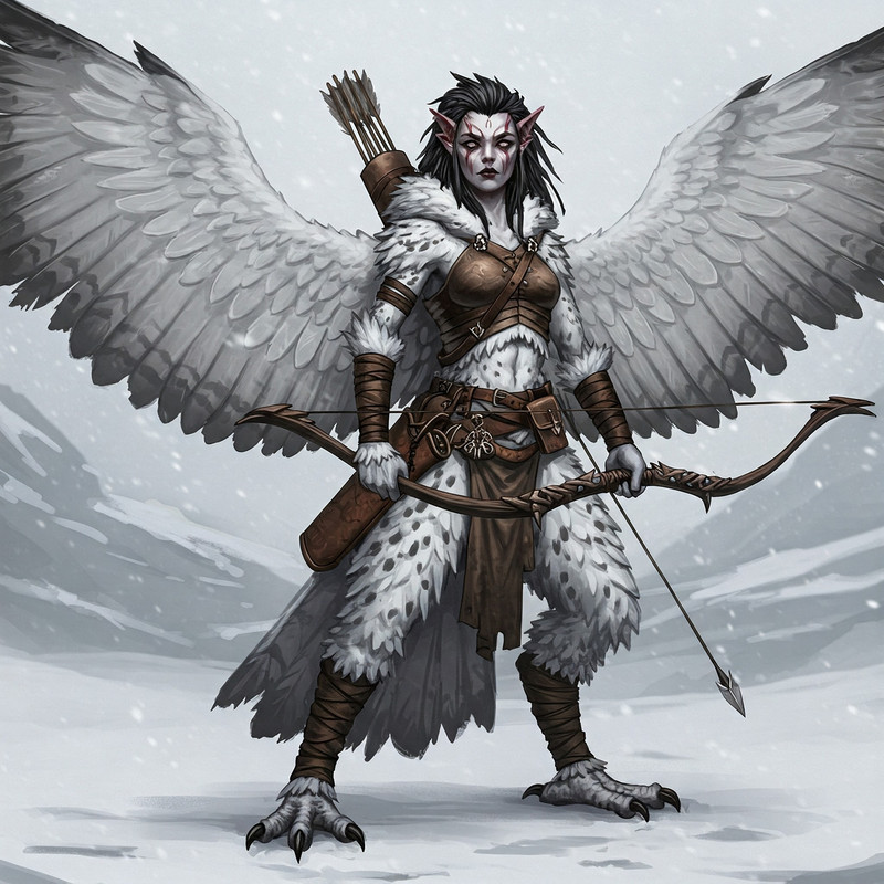 Cuando se incorporó, la luz del mediodía cayó sobre su espalda en ángulos que la hacían parecer un ídolo profano. Su silueta era una fábula andante: cuerpo de mujer hermosa cubierto de un plumaje níveo, alas de halcón, piernas de ave. Un oráculo que nunca dio consuelo, sino advertencias y condenas. Los huesos a su alrededor, dispuestos en círculos rituales, comenzaron a vibrar como si una música imposible surgiera de las entrañas de la tierra.
