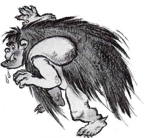 temporal que llega, guardando sus rebaños y buscando refugio. Algunas veces pasan años sin que se vea al Musgoso, pero los silbidos y la flauta siguen oyéndose por los prados y los bosques, cuando algo malo va a suceder ya que este misterioso ser es el mensajero de las calamidades. Los pastores saben esto y, si oyen su flauta, recogen rápidamente al rebaño, aunque no haya una sola nube en el cielo y los perros no gruñan ante el sonido de los lobos.