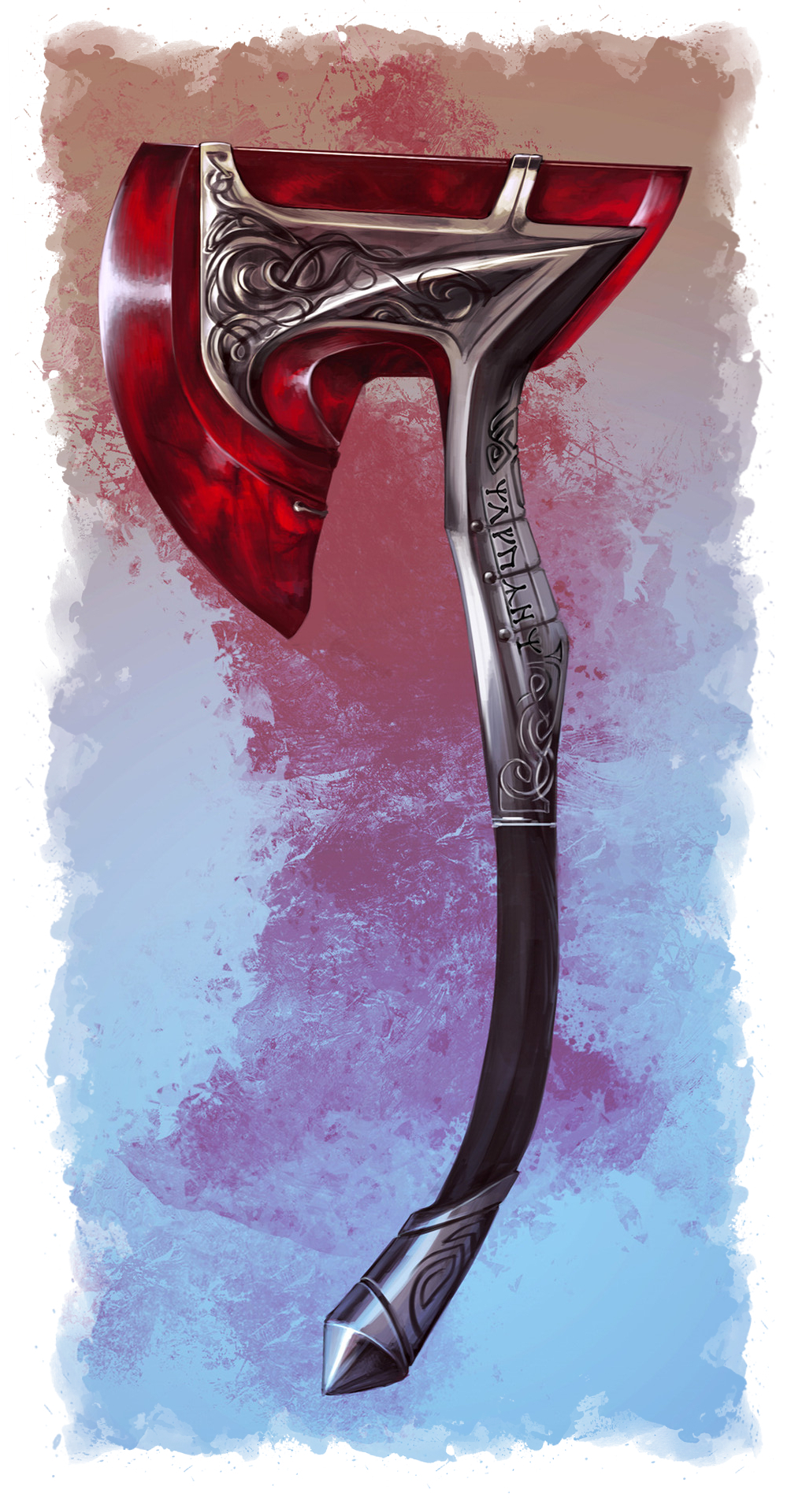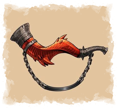 Cortado del cuerno de dragón rojo que el héroe Jagannash mató, y que fue entregado a los héroes del gremio el Éter y la Espada tras auxiliar al legendario dracónido en su lucha eterna en Bael Turath.