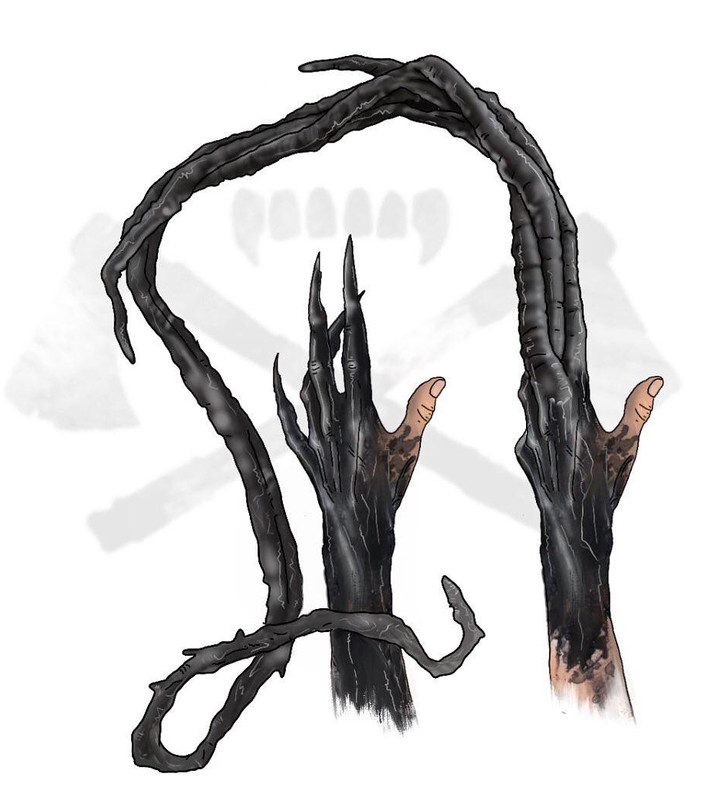 Un látigo simbiótico terminado en tres tentáculos gomosos. Para sintonizarse con esta arma simbiótica, envuelves el látigo alrededor de tu muñeca durante todo el período de sintonización, durante el cual el látigo incrusta dolorosamente sus zarcillos en tu brazo. Mientras la empuñes, puedes usar una acción para dar instrucciones a cada tentáculo para que ataque a una criatura que puedas ver y que se encuentre a 15 pies o menos de ti. Cada tentáculo realiza un ataque cuerpo a cuerpo con un bonificador de +9. Si impacta, causará 1d6 de daño contundente. Si impactas a un solo objetivo con los tres