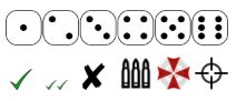 Éxito: Indica que tu arma ha realizado 1 punto de daño o que has conseguido un éxito empleando otras habilidades. Si has usado un arma de fuego consumirá una bala.
