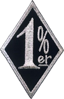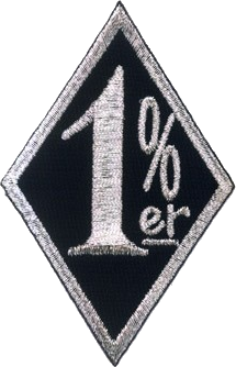 Diamante con el 1% en su interior Viene del comunicado de la American Motorcycle Association (AMA) después de os incidentes de Hollister en 1947 asegurando que el 99% de los motociclistas americanos pertenecían a su asociación y eran personas que respetaban la ley. El 1% se convirtió en el símbolo de los outlaw bike clubs, los clubes “fueras de la Ley”