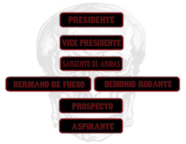 HERMANO DE FUEGO: Es un miembro oficial, se encargará de pasar informes de los prospectos y aspirantes a los dos miembros de mayor rango, para que estos se encarguen de mantener a los mejores y desechar a los que no funcionen dentro de el club.