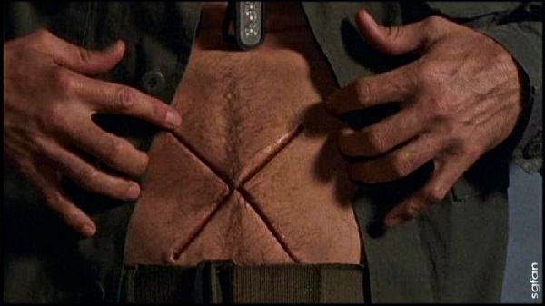 The second one, is related to the organic tissue that you have studied. The specimen comes from a hostile alien and it was located in the guts of the guy in some kind of marsupial bag.