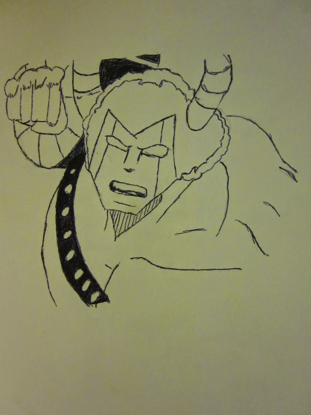 Personaje de la série Musculman, que me dejó alucinado antes de conocer Bola de dragón. Esto fue un calco y primer entintaje a boli de mi anterior versión a lápiz también sacado de la tele (creo).