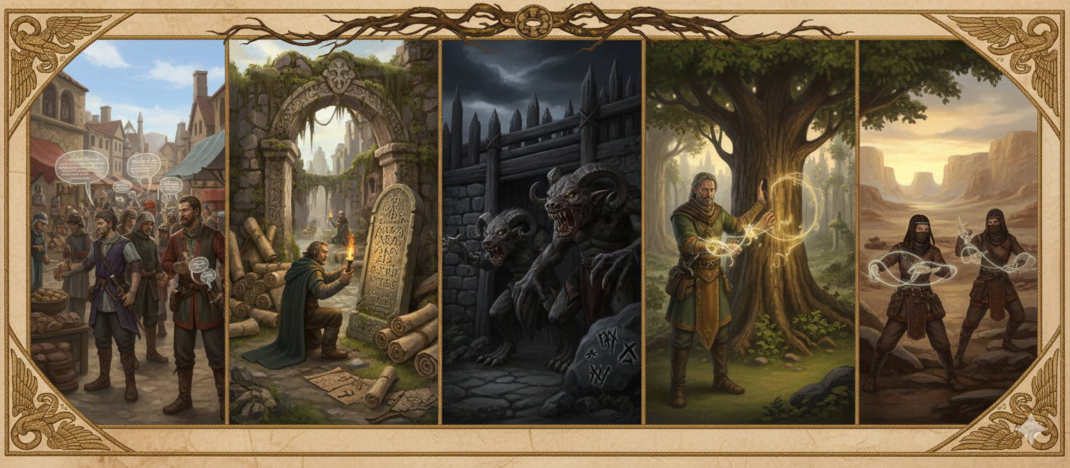 Marcas de Sendero (Trail Signs) - En reemplazo de Druidic como idioma, conoces el sistema de señales secretas que los Tuatha'an y los viejos exploradores dejan en los caminos. Puedes encontrar refugios seguros, fuentes de agua potable o advertencias de peligro que otros simplemente verían como ramas rotas o piedras apiladas.