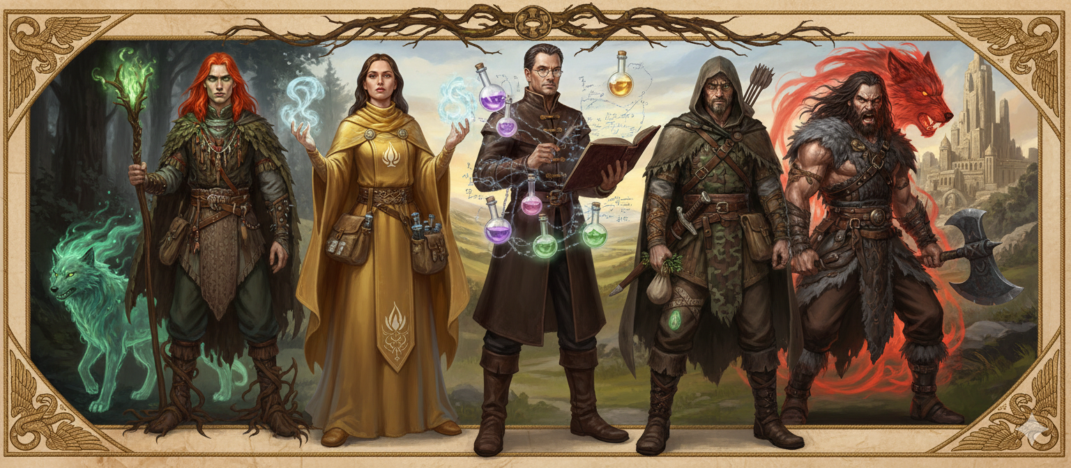 Encauzador Magician - Eres un Apotecario. Tu poder viene de la intuición (Sabiduría), pero tu técnica viene del estudio (Inteligencia). Cuando analices una planta o un residuo de poder, sumarás ambos atributos.