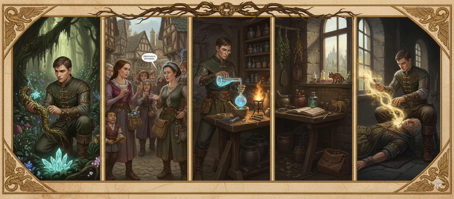 Tu personaje vive de forma austera, acorde con su conexión con la naturaleza. No tiene grandes riquezas, pero tiene lo esencial. Has abandonado la vida cómoda. La mayor parte de tu riqueza la inviertes en tus Suministros de Alquimista y tus hierbas raras. El día a día: Comida sencilla (pan de caminante, bayas), ropa desgastada, y pasas la noche en el suelo de una posada barata, el granero de un granjero o acampando bajo un buen árbol (usando tu habilidad de Naturaleza). Su pobreza no es miseria, sino simplicidad. No necesita un colchón de plumas ni seda cara; un buen abrigo de lana y un fuego son suficientes. Esto subraya su enfoque en lo esencial y su desconfianza hacia los excesos de la ciudad (como Cairhien o Tear).