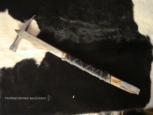 &- El arma puede utilizarse con las dos manos, elevando la fuerza del personaje en 1punto cuando se calcula el daño.
