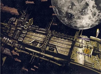 Obra atribuida a Hassant trak. Dicha imagen está basada en Lord Arham de Vrys , líder de la resistencia en Vrys. Según se cuenta esta obra fue realizada con el carbono emitido por los restos del Puerto Comercial en Vryes. La imagen representa el gesto sombrío de Arham tras la destrucción creada por los Vontau. En una digitalización de la imagen que se ha transmitido por repetidores piratas se escucha la voz de Lord Arham diciendo "reconstruiremos".