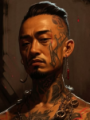 Como era de esperar de Matsuda su golpe fue muy fuerte, tanto que lanzo a Tamura varios metros hacia atras, estrellandose contra unas cajas que volaron por los aires, la sangre brotaba de la ceja de Tamura, pero haciendo acopio de fuerza de voluntad se pone de pie, sus tambaleantes piernas al principio no respondian pero despues cambio, ganando fuerza