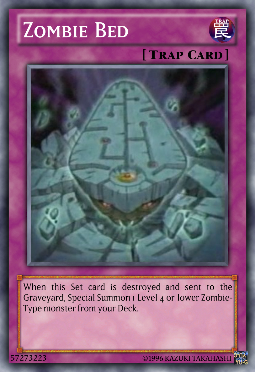 -¡Al destruir mi carta, has activado mi trapa: Cama Zombie! -revelé algo motivado mientras la carta se mostraba. -. Esto me permite invocar un monstruo de manera especial directamente desde mi deck, por lo cual invoco a... ¡Armored Zombie, en posición de ataque!